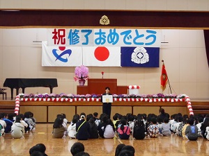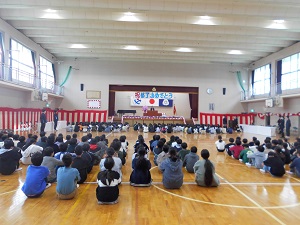 給食調理員さんをお招きして、全校で感謝の気持ちを表したり、