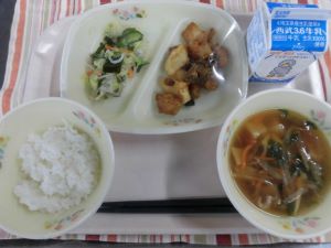 牛乳 ごはん 鶏肉とレバーのごまだれ