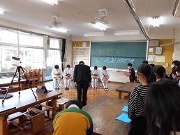 給食調理員さんを招いて、日頃の給食への感謝を伝える児童集会を行いました。給食委員のみなさんが進行し、給食の好きなメニューランキングや給食に係るアンケート結果の発表などを行いました。好き嫌いなくバランスよく食べ、食からもからだづくりをしていきましょう。
