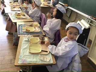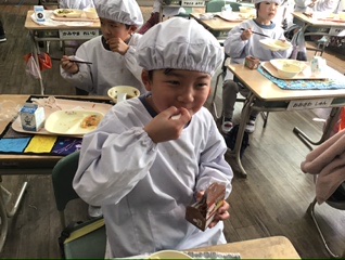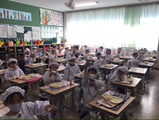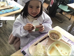 デザートのケーキは、事前に選択していたものが配られました。ちょっとしたお楽しみ給食になったようです。美味しそうに食べていました♪