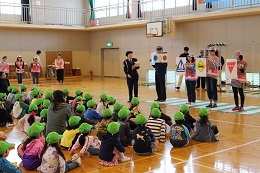 1年生は、「横断歩道の渡り方、左側通行の危険等」