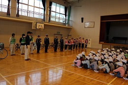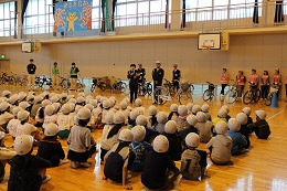 指導してくださる先生は、深谷市役所道路管理課、深谷警察署、交通指導員、交通安全母の会の皆様方です。今日は本当にありがとうございました。