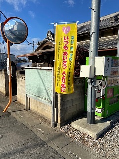 深谷西小学区の深谷地区自治会館へのぼり旗