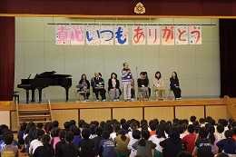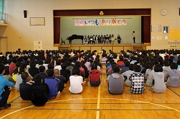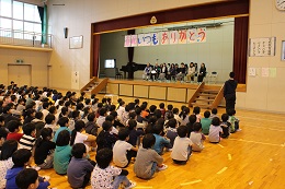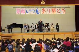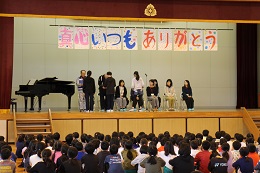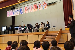◇11月13日(火)、西小の体育館において『まごころいつもありがとう集会』がありました。児童会が中心となって、日頃からお世話になっているボランティアの皆様をお迎えし感謝の気持ちを表しました。西小では、たくさんボランティアの皆様にお世話になっておりますが、今日の集会では、スクールガードリーダー様、交通指導員様、本の読み聞かせの皆様にお越し頂き、校長あいさつ、児童会長からのお礼の言葉、そして児童が書いた感謝のお手紙を手渡しました。また、全校で校歌も披露し、退場は花のアーチでお見送りをしました。とてもあたたかい集会となりました。