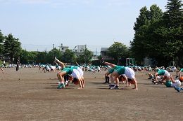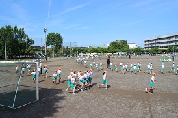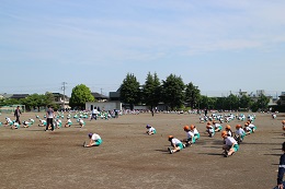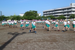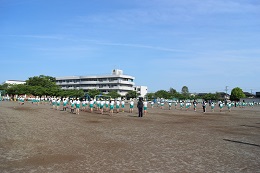 ◇昨日まで雨でしたが、今日はさわやかな天気に恵まれ、朝の体力作り「さわやかタイム」がありました。整列、健康観察、準備運動、3分間走、全校で朝からいい汗かいてます。