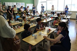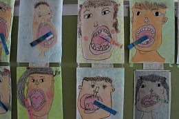 ◇本日は、歯科衛生士さん3名に指導者としてきていただきました。5時間目は1年生、6時間は4年生が、歯科衛生士さんに歯みがきの指導をしてもらいました。1年生は授業参観日でもあり、保護者の方にも汚れの確認及び仕上げみがきをしてもらいました。4年生は、混合歯列のみがき方を指導してもらいました。『目指せむし歯0(ゼロ)!』歯科衛生士さん、保護者の皆様、ありがとうございました。
