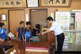 ◇本日の2時間目休みに校長室において、深谷西サッカースポーツ少年団の表彰を行いました。賞状は、「大幡招待サッカー大会 5年生の部 優勝」「草津少年サッカー親善大会 アンダー11の部 第3位」でした。がんばりました。