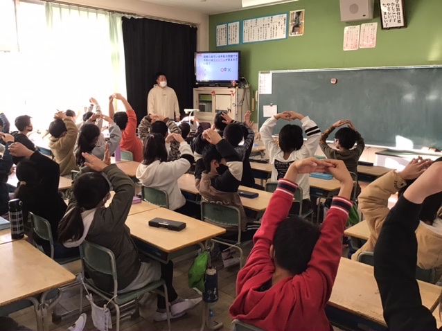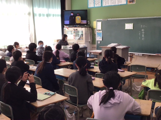 いつも美味しい給食を提供してくださる調理員さんに、給食委員会のメンバーが感謝の気持ちを伝える「感謝の会」を催し、その様子を動画で撮影をして本日視聴してもらいました。