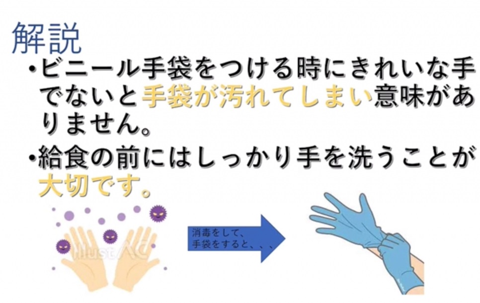 コロナ感染症対策を徹底しながらいつも通りおいしい給食を作ってくださりありがとうございます。児童の皆さん、感謝の気持ちは「残しゼロ」で表してください。