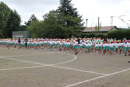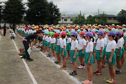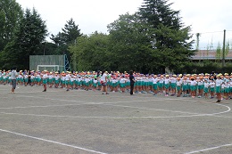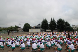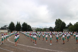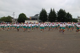 ◇本日より朝の運動会練習(全体練習)が始まりました。計画では、昨日より練習が入っていましたが、天候不順のため、本日からスタートとなりました。メニューは、行進練習、自分の位置確認、体操隊形の練習でした。初日ではありましたが、本当に良く聞き、動き、素早くできたと思います。今年の運動会は9月22日(土)ですので、暑さ対策も行いながら能率良く行っていきたいと思います。
