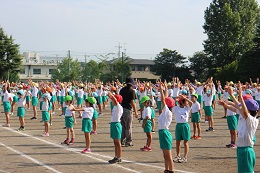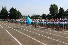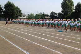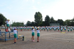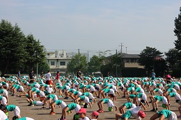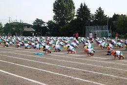 ◇気持ちのいい朝です。朝の全体運動会練習第2日目は、入退場行進、体操隊形、準備運動などを行いました。「さわやかタイム」でカエル倒立やブリッジを行っているため、今日の準備運動でもきれいにできていました。