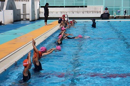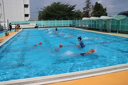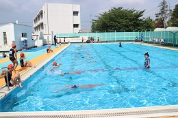 ◇7月27日(金)から8月2日(木)まで、合計5回の『プール開放』が始まりました。今日は初日のためか、または『深谷祭り』が始まったためか、いつもより少ない人数でしたが、その分のびのびと泳いでいました。天候も気になりますが、できるだけたくさん参加できるようにしましょう。