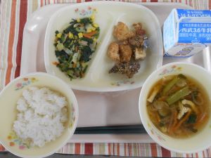 牛乳 ごはん 鶏肉と高野豆腐のごまだれ
