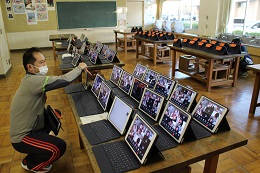 ◇12月20日(月)、本日、全校一斉のリモート授業が可能かを各家庭で接続の確認を実施しました。「放課後は学童で過ごす」「用事があるため家庭に不在である」などの理由で接続テストに参加できない場合は、iPadを持ち帰らず学校で接続テストを行いました。15時30分から16時までの30分間でしたが、全校一斉に接続をした結果、不具合はなく、約90%の接続が確認できました。今後、コロナ感染症拡大によっては、リモート授業を実施する場合もありますので、本日の接続テストはその準備として重要なものとなりました。