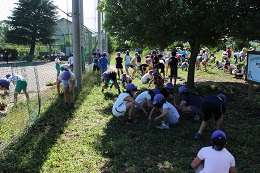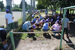 ◇今日は、少し風はありますが、青空いっぱいで良い天気です。4年生は8時20分に予定通り社会科見学に出発しました。その他の学年は、さわやかタイムの時間に『除草活動』を行いました。この時季、草の伸びが早く、校庭や学校農園の除草を行い、きれいになりました。