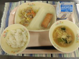 野菜炒め、コーン入り華風スープには、どちらもとうもろこしが