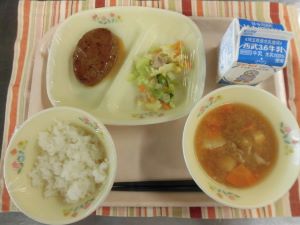 今日の汁物は、お味噌汁に牛乳とにんにくを入れた、