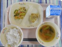今日の汁物は、野菜コンソメスープです。5種類の野菜と