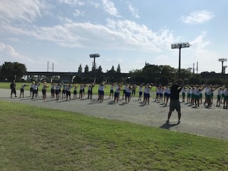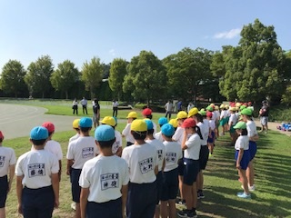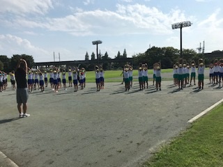 ◇昨日9月5日(水)、深谷小、桜ヶ丘小、大寄小、本校の代表各20名が深谷市仙元山陸上競技場で、深谷中、南中の先生から、陸上競技場の使い方や陸上種目の技術等について教えていただきました。暑い中だったので、木陰で話を聞き、休憩や水分を十分取りながら、たくさん教えていただきました。