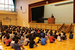 ◇本日、臨時に全校朝会を開き、その後、各学級で「交通事故防止と命」について、学級指導を行いました。