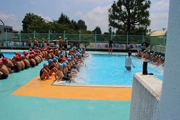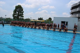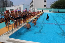 ◇プール開放が3日目です。今日の後半の部の様子です。たくさんの児童が参加し、プールが小さく見えます。台風の後、気温の上昇があり、また昼過ぎからは35℃を超える猛暑日になりました。明日のプール開放は、この天候が続きますと、午前中に35℃を超える猛暑日の恐れがあります。明日のプール開放の中止の連絡は、7時45分までに連絡メールとこのホームページでお知らせします。よろしくお願いします。