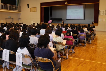 ※5年生は、体育館で「林間学校説明会」を行いました。