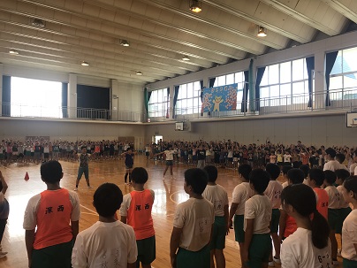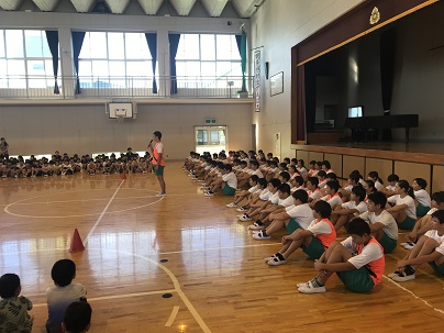 ◇明日、10月2日(火)に予定している、深谷市親善運動会(6年児童全員参加)の壮行会が今朝、体育館で行われました。6年生は4月から毎朝トラックを走り、短距離ダッシュやもも上げ、そして、長縄跳びの練習を積んできました。いよいよ明日は親善運動会になり、選手紹介や長縄跳びを披露しました。5年生を中心に「壮行会」が進められ、『フレフレコール』が体育館に響き渡りました。全校児童の思いを胸に、明日の親善運動会では思いっきり競技して、悔いの残らないようにしてほしいと思います。
