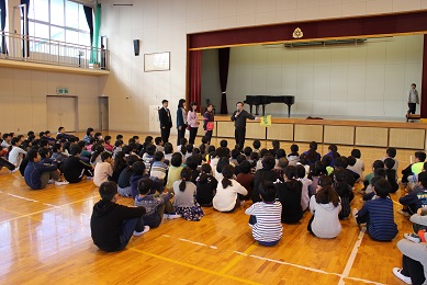 ◇11月20日、音楽朝会後に、清心寺踏切を渡る通学班全員が残り、踏切及び横断歩道の渡り方の指導を行いました。班長には、黄色の班旗を配りました。踏切や横断歩道では、班長が班旗を使って班員全員を渡らせることをルールとして伝えました。踏切を渡る通学路は危険がたくさんあると考えます。できるだけ危険にならないよう、また班長だけでなく班員全員がしっかり自分の命は自分で守る事を自覚してほしいと考えます。