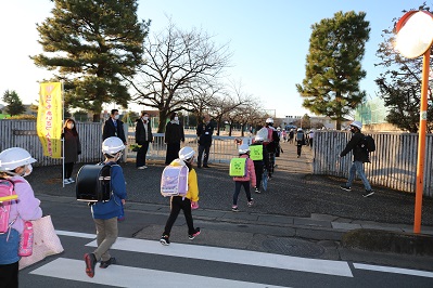 児童の徒歩での登下校にご協力いただくとともに、特別のやむを得ない事情で学校敷地内に車で入る場合、児童の安全を最優先に考えていただきますようお願いします。