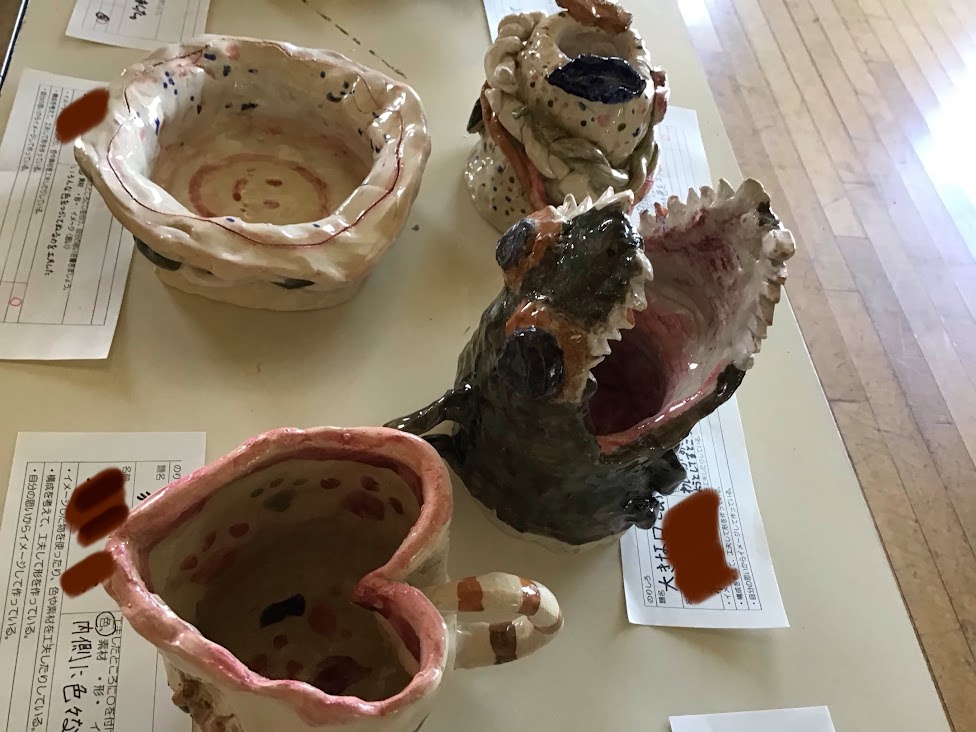 3学期に完成し、見事に焼きあがった作品はどれも独創的です。作品作りから窯焼きまで携わってくださった講師の先生からも、発想の豊かな子供たちについてお褒めの言葉をいただきました。貴重な体験も作品も、財産になりそうです。