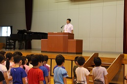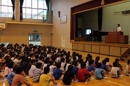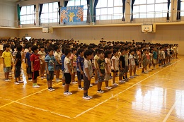 ◇第2学期が始まり、体育館で始業式を行いました。第1学期に校長先生と約束した、①夏休みを安全に過ごすこと、②元気な姿でまた2学期に登校することについて、しっかり約束が守られたことを確認しました。全校児童の皆さんの態度はとても立派で、話を聞く姿勢も素晴らしかったです。校長先生のあいさつの内容は、今日から始まった『朝のあいさつ運動』と『3つの「り」』についてのお話でした。詳しい内容は、本ホームページのメニュー「校長室より」にアップしてあります。